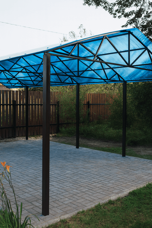 Чем больше площадь перекрытия, тем выше расход материалов и трудозатраты. Для небольших навесов можно использовать облегчённые решения, тогда как для больших потребуются усиленные опоры и фермы. -