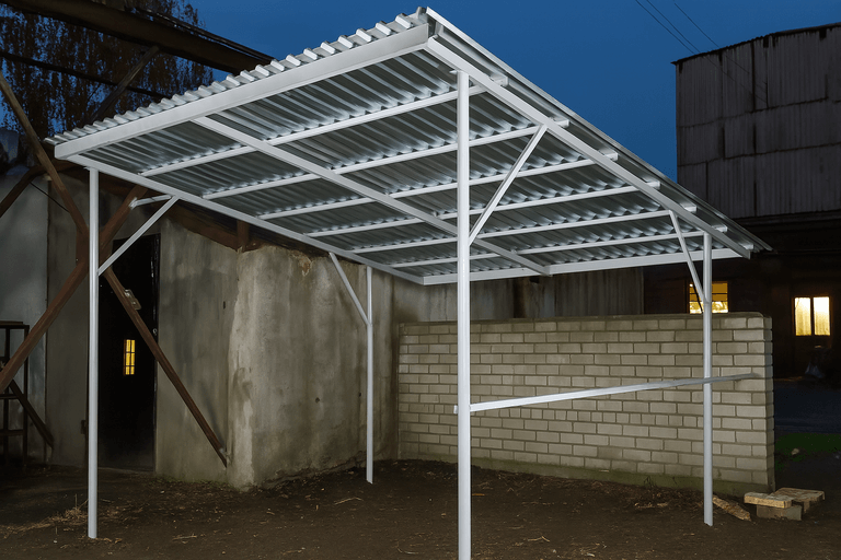 Изготовить навес из профильной трубы можно в короткие сроки — технология позволяет точно рассчитать нагрузки и обеспечить надежность конструкции. Такие навесы подходят для маленьких участков и больших парковочных зон.